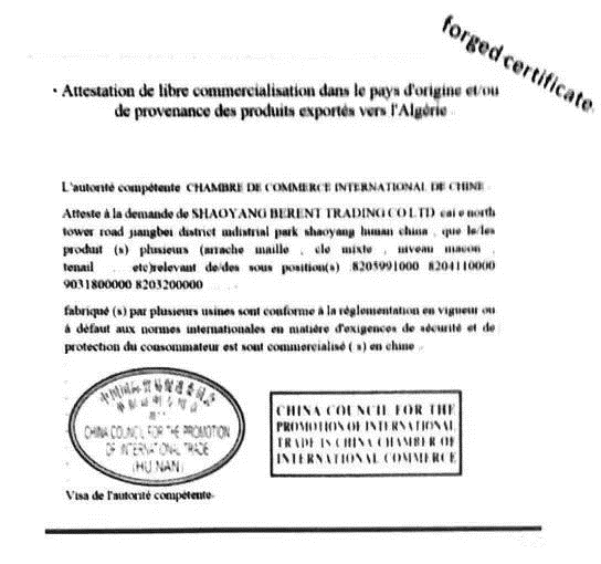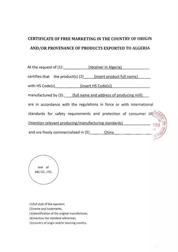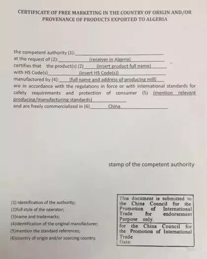 出口產(chǎn)品不在這851項之列的小伙伴也不要大意,阿爾及利亞商務(wù)部出臺新規(guī),對我國出口至阿的貨物要求提供原產(chǎn)國有權(quán)機構(gòu)蓋章的“自由市場證書”(The certificate of free marketing in the country of origin),在阿方銀行備案后方可獲得其為我企業(yè)開具的信用證。