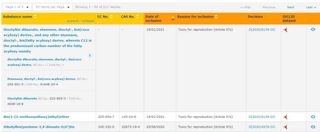 歐盟ECHA正式公布REACH法規(guī)中的SVHC清單為211項