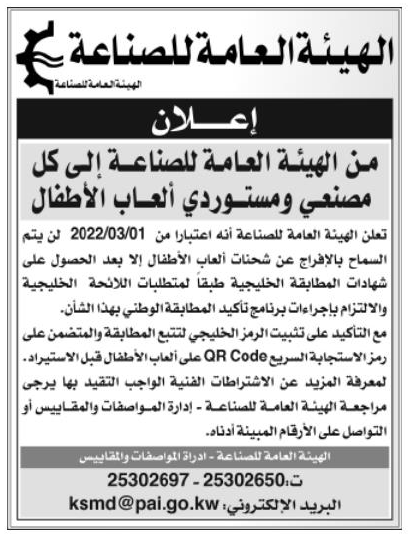 科威特工業(yè)部KUCAS開始強(qiáng)制實(shí)施兒童玩具最新要求